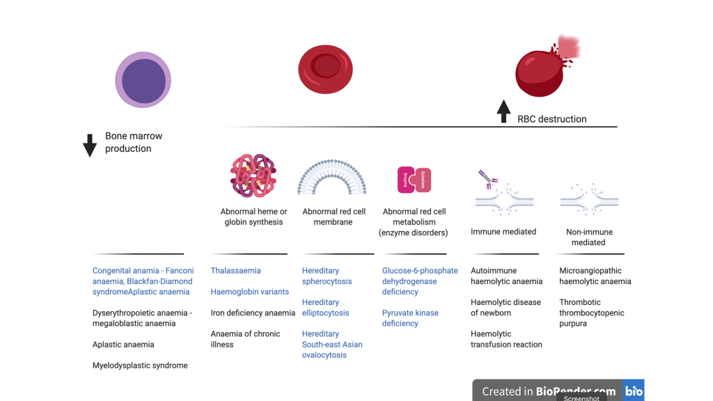 Many conditions can contribute to anaemia. In simple terms, anaemia may either occur due to: