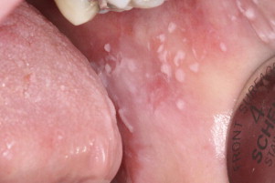 Shamshul appeared alert, muscular and in good nutritional status and in no acute distress. There was moderate pallor with no jaundice. A few petechial rashes were noted over the chest and lower limbs. No retinal bleeds were observed. Oral examination showed several small white patches on the left buccal mucosa. No oral ulcers or bleeding was noted.